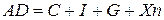 Совокупный спрос (AD) представляет собой суму всех расходов на конечные товары и услуги, произведенные в экономике. В структуре AD выделяют спрос на потребительские товары и услуги домохозяйств (С), спрос на инвестиционные товары (I), спрос на товары и услуги со стороны государства (G), спрос на чистый экспорт (Xn).