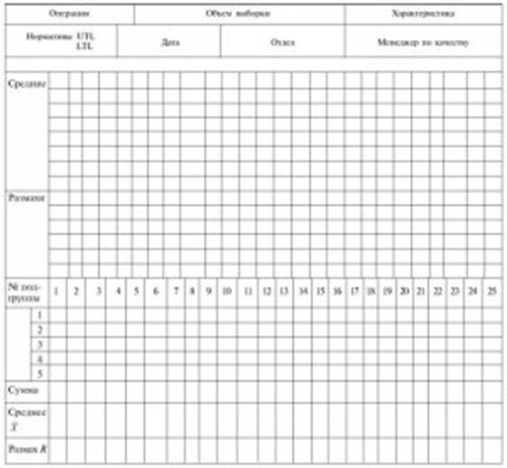 - и R, а горизонтальная шкала - для номера подгруппы. Наносят вычисленные значения