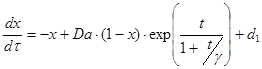 Все остальные величины явл-ся параметрами математической модели. Единственным уравнением измерения в данном случае явл-ся у = t, что означает, что в ходе технологического пр-са, контролируется только температура в реакции. В случае если указанная реакция осуществляется не в объемном, а в трубчатом реакторе, с охлаждением через стенку, то математическая модель принимает вид: