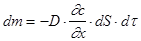 и коэффициенту диффузии D (см2/с). Знак минус указывает, что диффузия протекает в направлении, обратном вектору градиента концентрации.