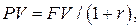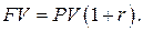 где через PV обозначена текущая (дисконтированная) стоимость будущего денежного потока; через FV – будущая (наращенная) стоимость текущего денежного потока; через r – ставка доходности за определенный период, соответствующая оценке инвестором уровня риска. Формула, обратная формуле (2.1), носит название формулы наращения: