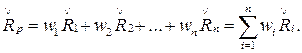 Проведенный выше для одиночного актива анализ достаточно легко обобщить на случай инвестиционного портфеля. Ожидаемый доход Řp инвестиционного портфеля, состоящего из n активов, каждый соответственно c ожидаемым доходом Ři и удельным весом в портфеле wi, можно выразить формулой: