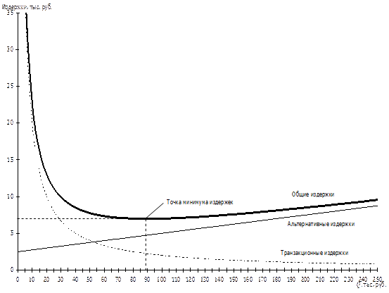 где первое слагаемое представляет собой трансакционные, а второе — альтернативные издержки.