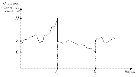 В момент времени t 1 происходит покупка ценных бумаг на сумму (H – Z), а в момент t 2 ценные бумаги продаются с чистой выручкой (Z – L).