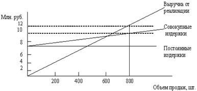 Чтобы получить желаемый размер прибыли, необходимо найти требуемое положительное расстояние между графиками выручки от реализации и совокупных издержек.