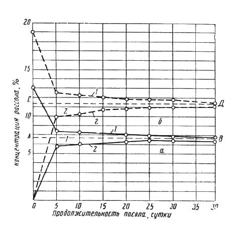 Рис. 46. Диаграмма изменения концентраций соли во времени:
