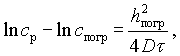 При условии, если ход диффузии рассматривается на отрезке между поверхностью тела и точкой на глубине h, т. е. если h 1 = 0, уравнение (V-4) примет вид