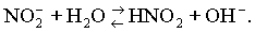 Нитрит как соль сильного основания и слабой кислоты в присутствии воды гидролизуется