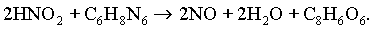 Чаще всего применяют аскорбиновую кислоту, которая реагирует непосредственно с азотистой кислотой, образуя окись азота и дегидроаскорбиновую кислоту