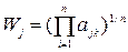 2. Далее для каждого критерия определяется вес по формуле средней геометрической: