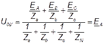 Эту же электрическую цепь можно считать трёхфазной и вести расчёт, пользуясь формулой смещения (при этом