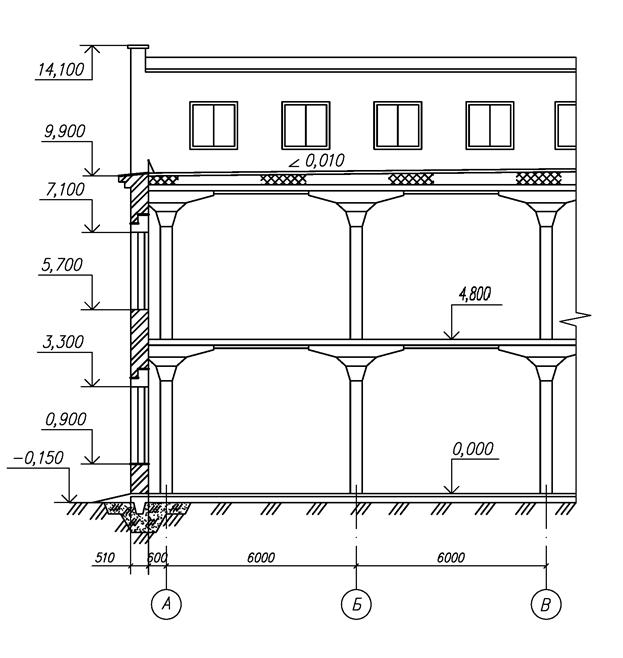 Поперечний розріз будівлі з безбалочним перекриттям /серія 1.420.1-14/