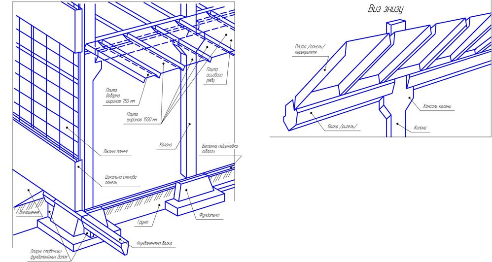Монтажна схема багатоповерхової будівлі з балочними перекриттями