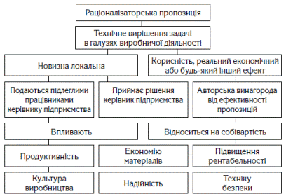 Раціоналізаторською пропозицією є визнана юридичною особою пропозиція, яка містить технологічне (технічне) або організаційне рішення у будь-якій сфері діяльності рис.1.7.