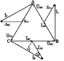 Таким образом, при соединении треугольником соотношение между линейными и фазными токами выражается формулой: