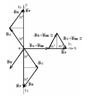 Рис.3.30. Векторная диаграмма положений векторов результирующей магнитной индукции для моментов времени t
