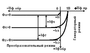 Рис. 7.37. Вольтамперные характеристики, поясняющие принцип работы фотодиода в генераторном и преобразовательном режимах