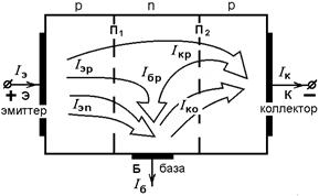 Рисунок 3.2. - Распределение токов в биполярном транзисторе.