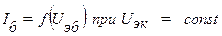 выходная характеристика отражает зависимость тока коллектора от напряжения на коллекторе относительно базы при фиксированном токе эмиттера (рис. 3.5 б)
