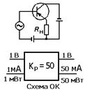 Схема включения с ОЭ обеспечивает усиление сигнала, как по напряжению, так и по току.
