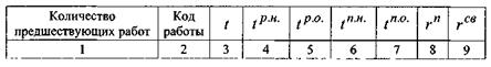 Если видов работ достаточно много и сетевой график сложен, удобно пользоваться таблицей, сохраняя указанную методику расчета прежней: