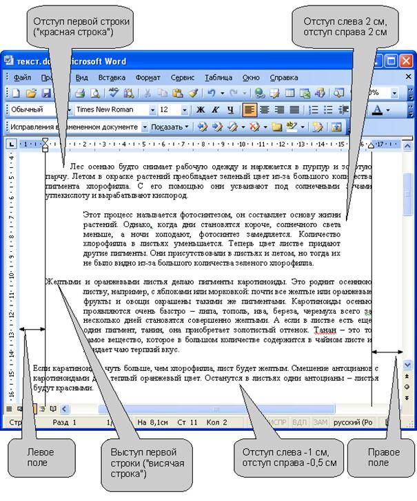 Установка отступа абзаца изменяет положения текста относительно левого и/или правого полей страницы (рис. 9.16).