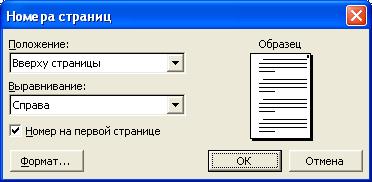 Рис. 13.8. Установка номеров страниц в диалоговом окне "Номера страниц"