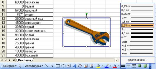Для обрамления рисунка можно использовать кнопки панели инструментов Рисование (рис. 24.11). Щелкнув по кнопке Тип линии, можно выбрать тип и толщину линии рамки. Щелкнув по кнопке Тип штриха, можно выбрать шаблон линии рамки (сплошная, пунктирная и т. д.). Щелкнув по стрелке кнопки Цвет линии, можно выбрать цвет линии рамки.