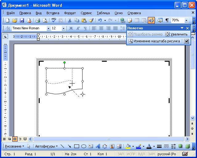 Рис. 25.5. Изменение размера автофигур перетаскиванием маркеров (крестиком показан указатель мыши, пунктиром - траектория перемещения указателя)
