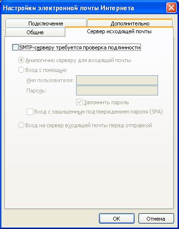 Для отдельных почтовых служб во вкладке Сервер исходящей почты (рис. 29.9) требуется установить флажок SMTP-серверу требуется проверка подлинности.