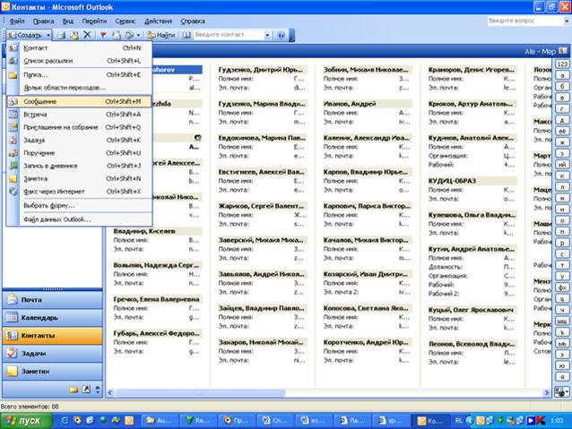 При регулярной рассылке сообщений стабильному составу адресатов можно создать список рассылки. Список рассылки создается при работе с областью Контакты Microsoft Outlook.