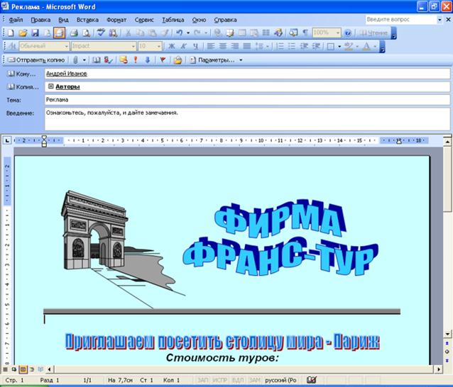 Рис. 30.10. Отправка документа Microsoft Word по электронной почте