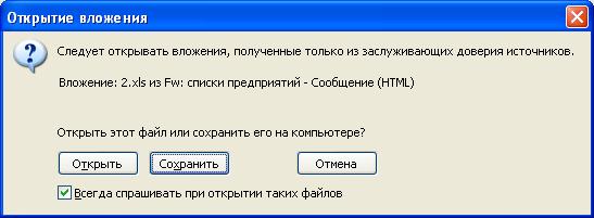 Если сообщение с прикрепленными файлами получено от надежного адресата, можно выбрать команду Открыть. При этом появится предупреждение (рис. 31.17), в котором надо нажать кнопку Открыть.