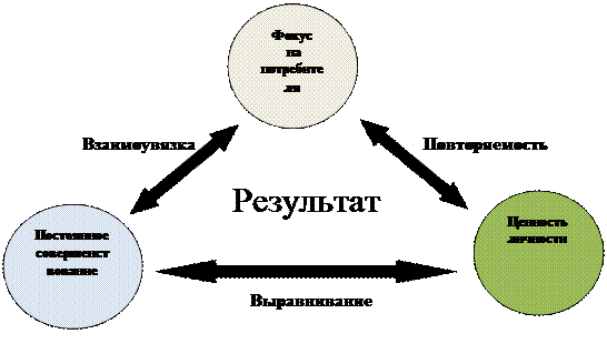 Одновременно был разработан, позаимствован или вновь открыт целый клад инструментов, помогающих сфокусироваться на потребителях, вносить быстрые улучшения и привлекать к участию в улучшении всех работников организации. Все имеющиеся или даже часть имеющихся инструментов ещё несколько лет назад казались совершенными и замечательными. Сегодня же они стали рутинной темой обучения в программах переподготовки кадров, реализуемых компаниями, в средней и высшей школе, а также в бизнес - колледжах. Но только этих инструментов недостаточно. Даже столь замечательные принципы как фокус на потребителя, вовлечение всех работников компании и постоянное совершенствование, не способны обеспечить компаниям вхождение в число мировых лидеров. Чтобы стать и оставаться таковыми, компании должны выстраивать (выравнивать) все работы в соответствии со своей стратегической целью, увязывать различные работы воедино для достижения выдающихся результатов и уметь быстро повторять успех (см. рис. 4.40).