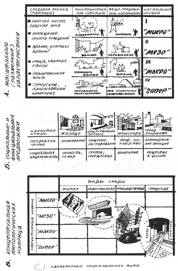 Детальная трактовка размерно-функциональной типологической матрицы, указывающей проектировщику приоритетные средства формирования среды, подсказывает существование и иных классификационных систем, рассчитанные на специфическое приложение.