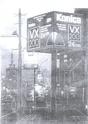 Рис. 14.14. Городской интерьер – композиция из формирующих пространство зданий и наполняющих его объемов и элементов (столбы с фонарями освещения, рекламные щиты и др.) [1]