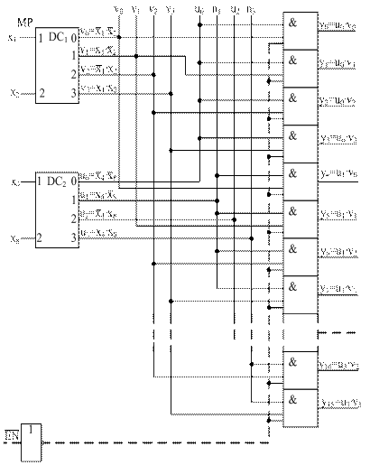 Быстродействие такого дешифратора оценивается величиной TDC (2) = 4 tзд. ЛЭ, а затраты оборудования ЕDC (2) = 81 условных транзисторов1.