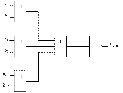 Рисунок 33 – Логическая схема для проверки равенства двух многоразрядных двоичных чисел