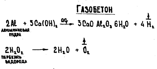 При использовании в качестве газообразователя пергидроля 80% -ного раствора перекиси водорода / выделяется свободный кислород, вспучивая массу. С пергидролем работать труднее, чем с алюминиевой пудрой, т.к. он менее устойчив. Степень вспучивания газобетона, а следовательно, и средняя плотность регулируется добавками газообразователя.