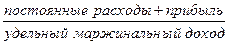 Порог безубыточности может рассчитываться в натуральных (5.5) и стоимостных единицах (5.6).