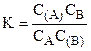 Как для всякой химической реакции константа равновесия (К) определяется выражением: