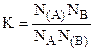 Если концентрацию А и В выразить в мольных долях, то есть общее число молей в растворе N=A+B, и общее число молей на адсорбенте (N)=(A)+(B), тогда А/N+В/N=1 или NA+NB=1, и (NA)+(NB)=1. Соответственно константа адсорбционного равновесия равна