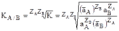 где ZA и ZB – стехиометрические коэффициенты в уравнении, равные валентностям ионов А и В.