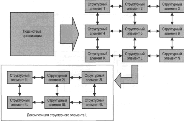 Организация, как правило, имеет большое количество подсистем, поэтому число структурных элементов и связей между ними весьма велико.