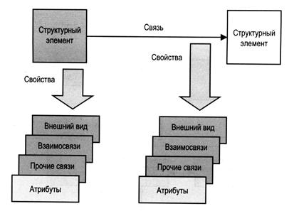Каждый структурный элемент (или объект) и связь обладают определенными свойствами, которые должны быть описаны (рис. 8). Одной из разновидностей свойств являются атрибуты.
