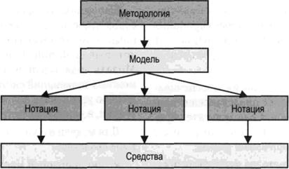 Архитектура CASE-систем основана на парадигме «методология — модель — нотация — средства» (Рис. 3.9).