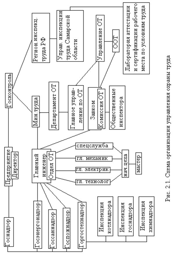 Правильная организация работы по охране труда имеет первостепенное значение для повышения производительности труда, ликвидации причин несчастных случаев, предупреждения травматизма, профессиональных отравлений и заболеваний. Организацию работы и контроля по охране труда можно представить в виде схемы (рис 2.1).