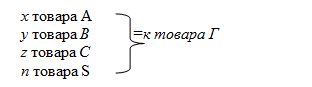 В частности, уже первая простая, одиночная или случайная форма стоимости, возникла одновременно с зарождением обмена и положила начало основополагающим отношениям товарного производства, в котором товары объективно противостоят деньгам. Содержание тогдашнего обмена математически можно изобразить так: