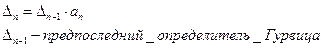 Строим определитель Гурвица n-ого порядка. Строится следующим образом: 1-я строка коэффициенты с нечетными индексами. 2-я строка и последующие с индексами на 1 меньше. Если индес отрицательный или больше n то он равен 0.