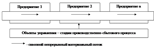 При логистическом подходе управляющие воздействия прилагаются со стороны единой логистической системы управления к отдельным стадиям производственно-сбытового процесса. Эти управляющие воздействия формируются исходя из общих целей и критериев эффективности исследуемой логистической цепи таким образом, что выходные параметры сквозного непрерывного материального потока оказываются достаточно предсказуемыми и контролируемыми.